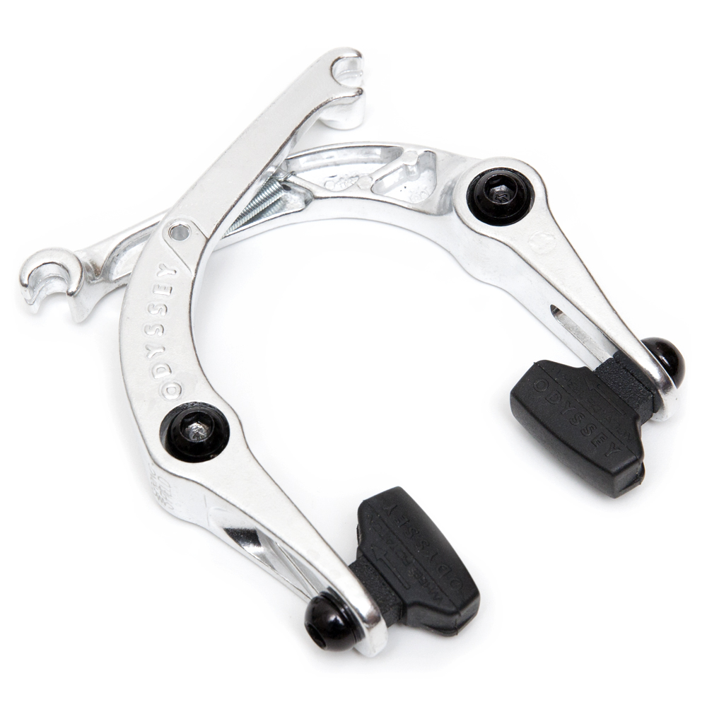 The SPRINGFIELD BRAKE drops the two ordinary (and confusing) brake springs and replaces them with one central spring that applies the same force to each arm, requiring no additional adjustment. This makes assembly incredibly easy – just bolt it on and go. The brake arms are designed to maximize stiffness and save weight without adding excessive cost. By die-casting the arms and using shared tooling to make each side, the Springfield meets all of the original design goals, resulting in a very powerful and affordable brake.