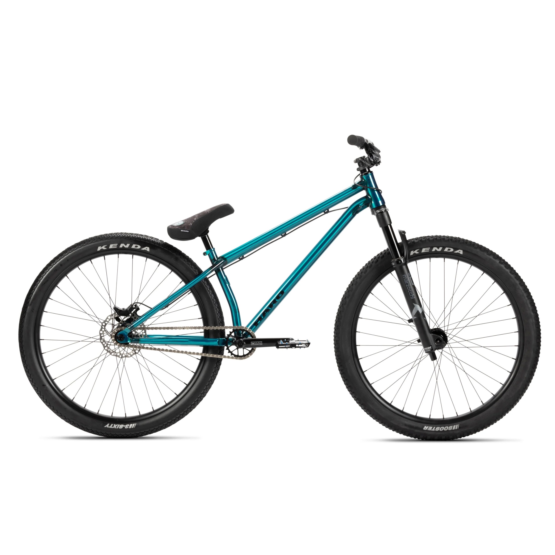 Tires: Front - 26x2.4" Kenda booster SRC, Rear - 26x2.25" Kenda 360 SRC