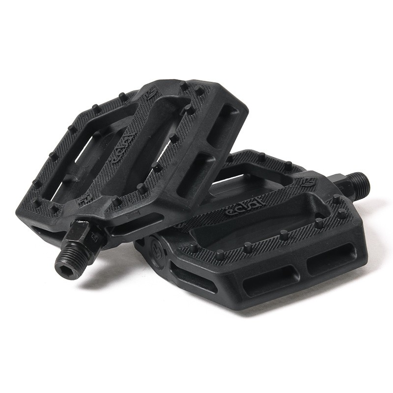 Our riders asked for a low profile, micro style pedal using the loose ball bearing system and integrating a crmo spindle, we scratched our heads and shortly after delivered the Slash nylon pedal. It’s somewhere close to perfect in size, features a lightweight design and has a nice knurled top surface.