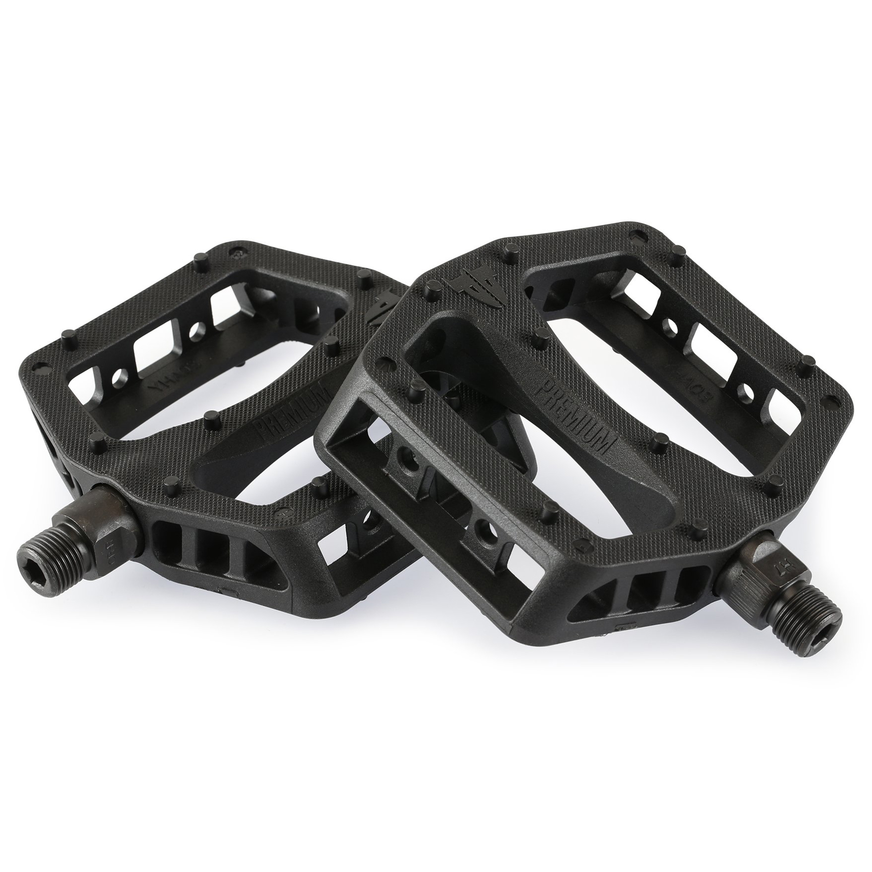 Our Premium Kinetic PC pedals feature lightweight nylon bodies with micro knurled surfaces and 10 molded pins per side for maximum traction and control, chromoly spindles and unsealed bearings.